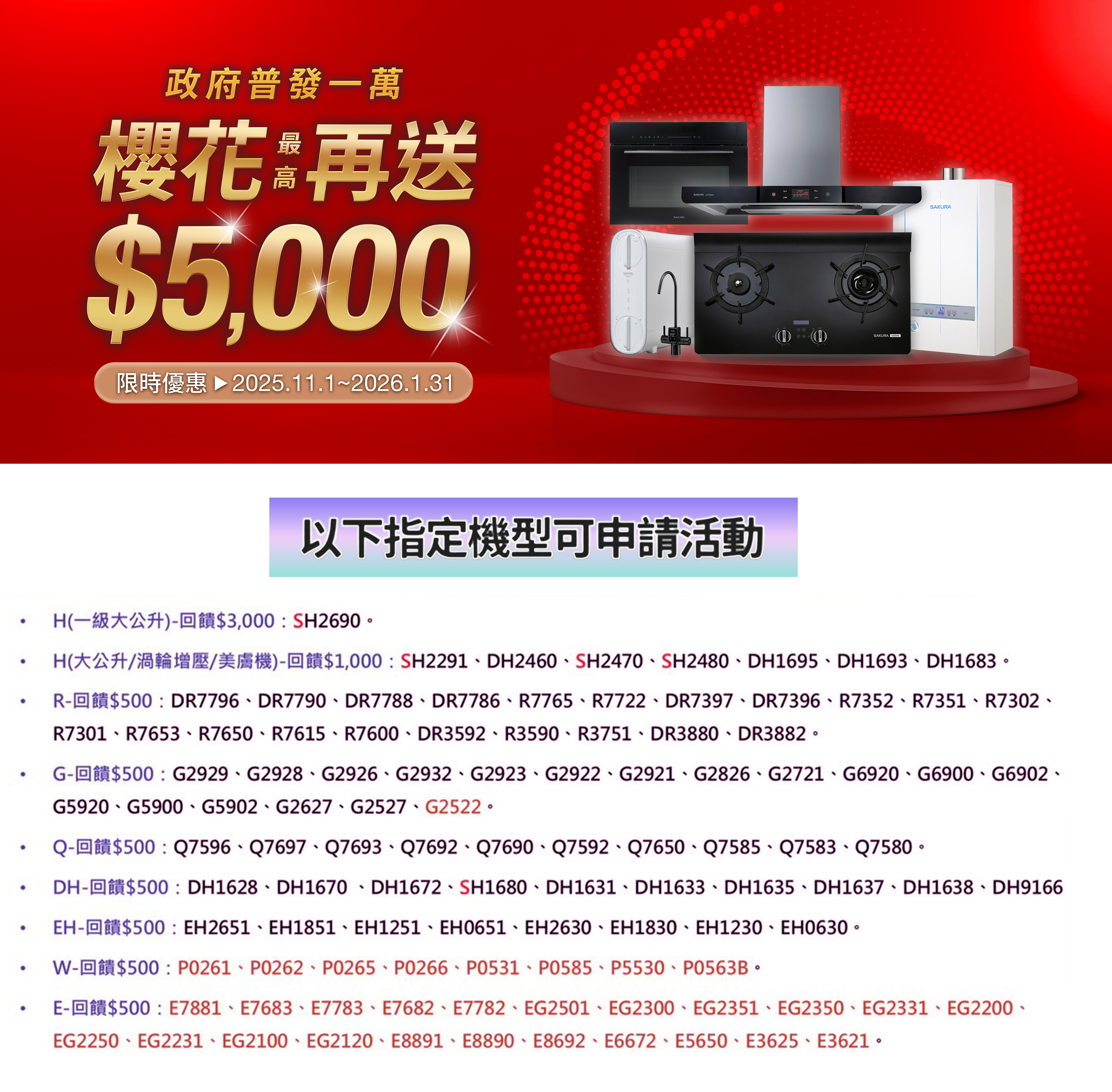 政府普發一萬,櫻花再送5000元