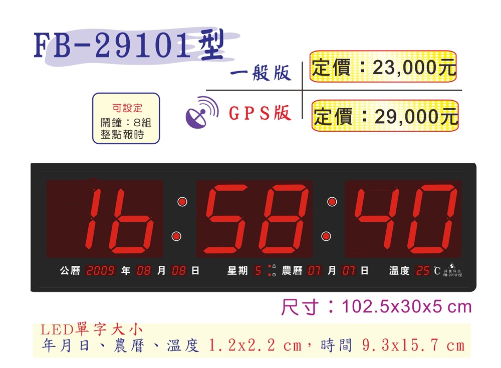【大巨光】電子鐘/電子日曆/LED數字鐘[GPS版]系列(FB-29101)