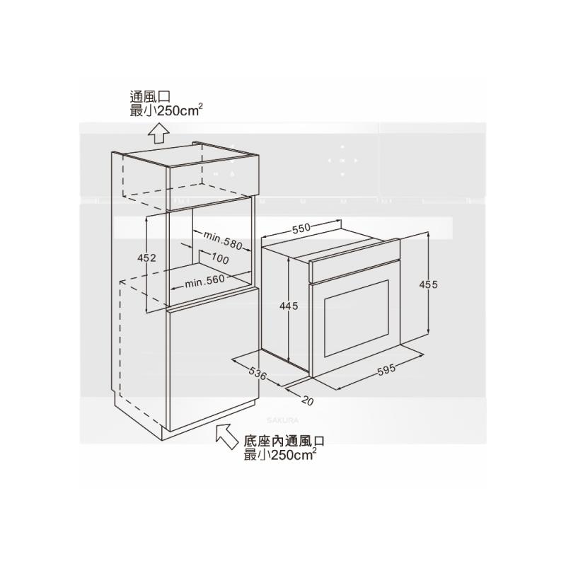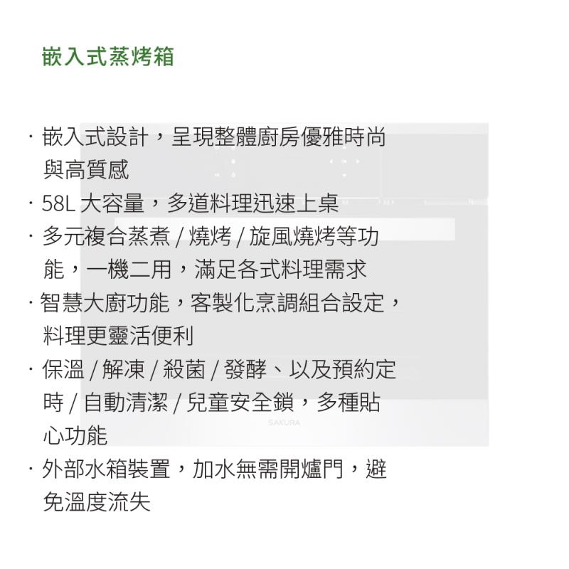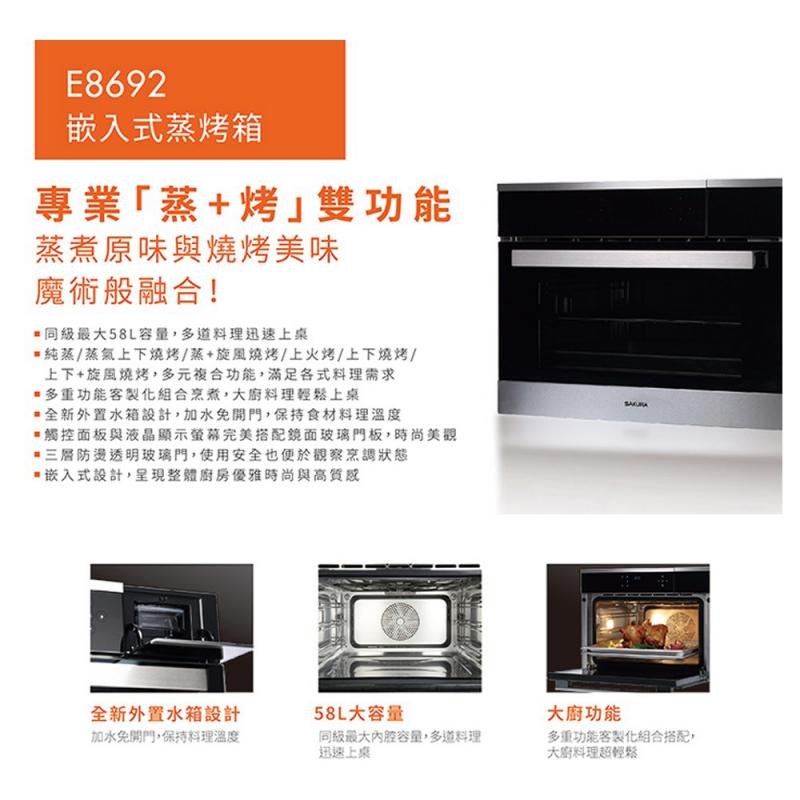 【大巨光】櫻花牌 E8692嵌入式蒸烤箱 58L大容量