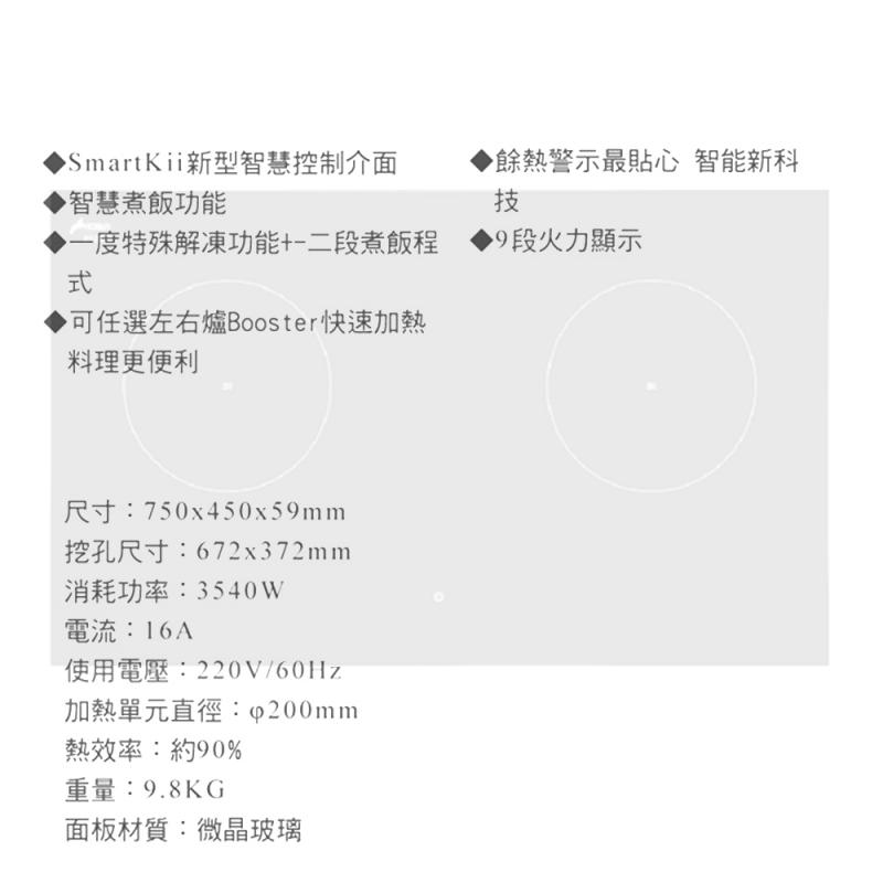 IH加熱單元直徑(mm)φ200+φ200(可左右爐任選擇一執行Booster快速加熱)