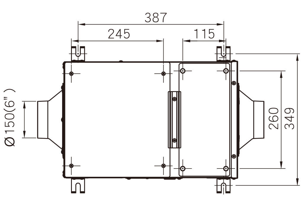 | 安裝於室內側 | 鍍鋅鋼板+白色烤漆 | 110V~ 60Hz | 強速 | 320 | 68 | 0.70 | 27 | 50 | 0.84 | Ø150 (6吋) | 9.8 |