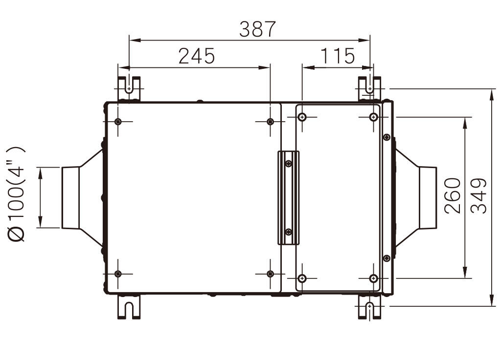 | 安裝於室內側 | 鍍鋅鋼板+白色烤漆 | 110V~ 60Hz | 強速 | 200 | 38 | 0.35 | 24 | 43 | 0.45 | Ø100 (4吋) | 9.3 |